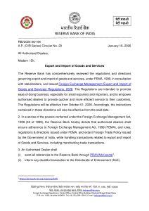 RBI circular on export of goods and services January 2026