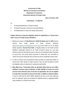 Trade Notice 15 2025-26 on Source from India eligibility change
